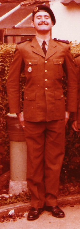 À peine arrivé à la caserne et avant d’avoir le temps de réaliser ce qui se passe, je me retrouve en uniforme et avec le crâne rasé. Heureusement, après maintes ruses et un premier conflit avec mes supérieurs, j’arrive après un savant stratagème à passer à la photo avec mes bacchantes à la tartare ce qui les a sauvés d’une fin certaine. Du moment qu’elles étaient sur ma carte d’identité militaire, elles devenaient intouchables. J’ai donc dû assumer le fait d’être le seul moustachu de la caserne, ce qui me donnait une certaine individualité, chose très mal vue. Heureusement, mon chef de section était un vieux baroudeur qui avait fait toutes les guerres et qui avait la qualité essentielle et unique d’être barbu ! Le seul barbu que j’ai vu dans l’infanterie de marine ! Ses nombreuses médailles lui octroyaient certainement ce rare privilège. Il prit donc sous sa protection mes moustaches et lorsque je refusais la place de dactylo que l’on m’imposait alors que je voulais devenir GV, c’est-à-dire, grenadier voltigeur, il fit pression sur la hiérarchie.