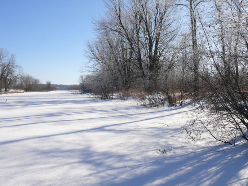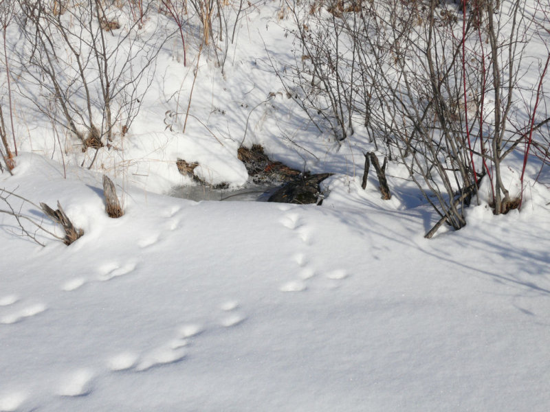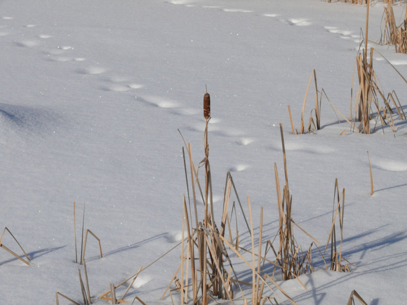 De ce milieu grouillant de vie en été, on ne voit en hiver que quelques typhas, dressés fièrement au milieu des glaces telles des sentinelles végétales qui veillent l’arrivée du printemps. Quelques huttes de rats musqués mettent un peu de relief et sont régulièrement visitées par des petits prédateurs.