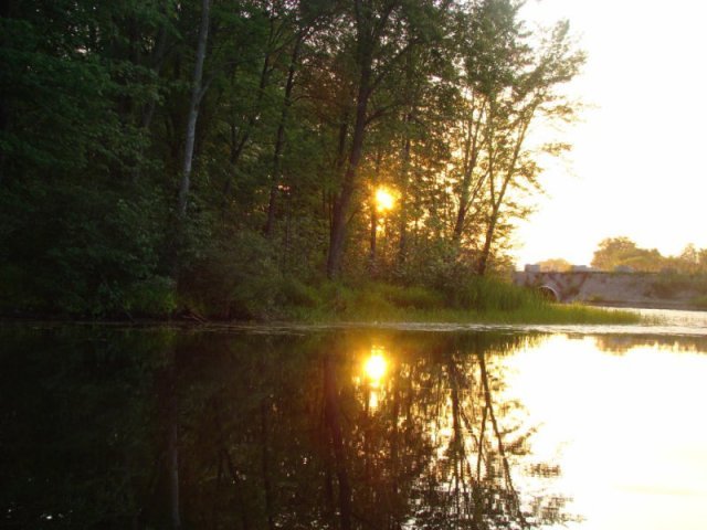 Un arbre commence à rougir, l’automne arrive, une mouette se baigne tranquillement et nous regarde passer. J’aperçois la grange, nous arrivons au moment où le soleil disparaît derrière l’horizon.