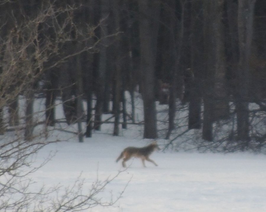Quelques kilomètres plus loin, à 520 mètres environ de la piste, un coyote solitaire se promenait. Les photos sont à la fin du diaporama. Elles ne sont pas géniales vu la distance mais on le voit bien.