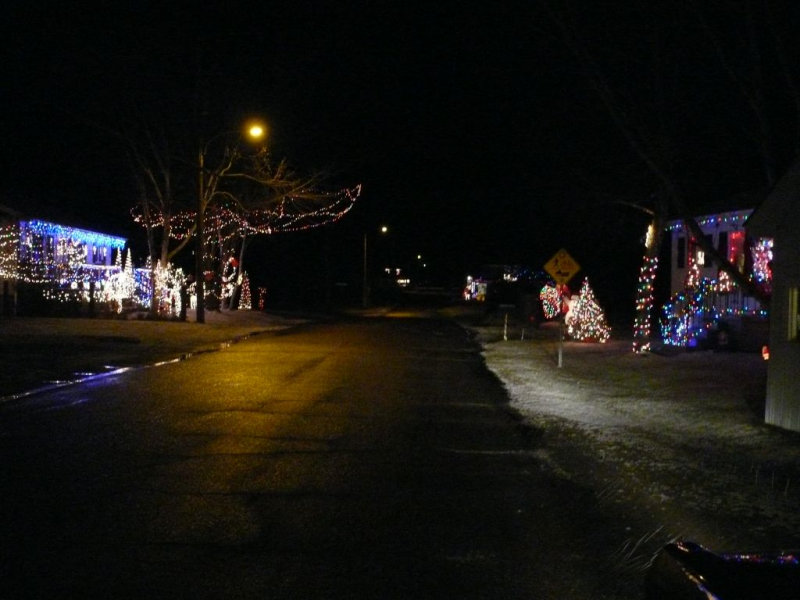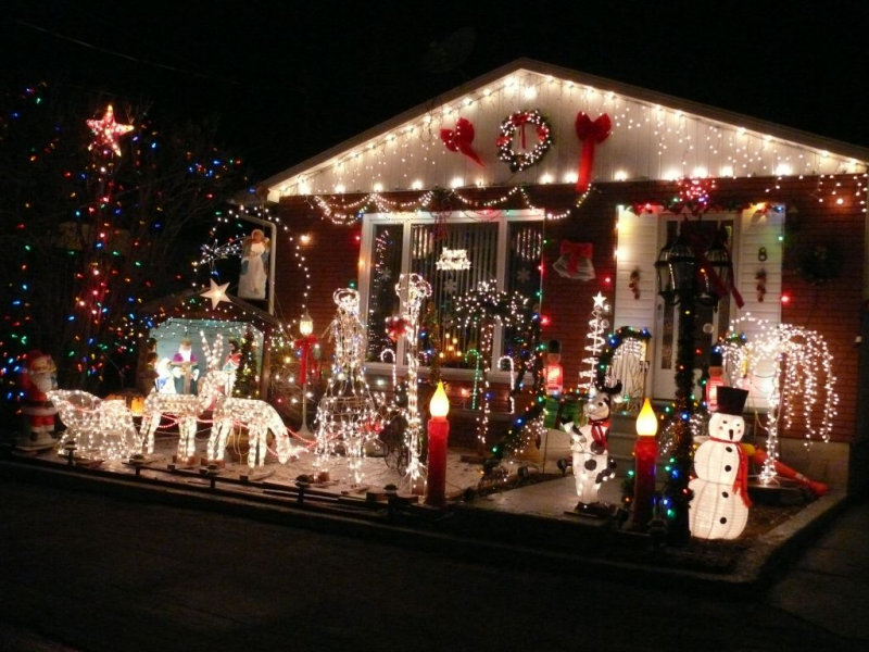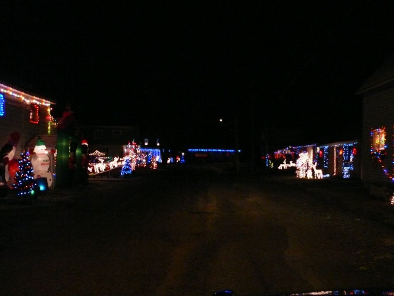Dans certaines rues, la totalité des maisons sont illuminées. Toitures, fenêtres, haies, pelouses, la lumière jaillit de partout ! À certains endroits, des personnages articulés lumineux comme des rennes, des pères noël, des lutins, nous font signes et chantent des mélodies de noël.