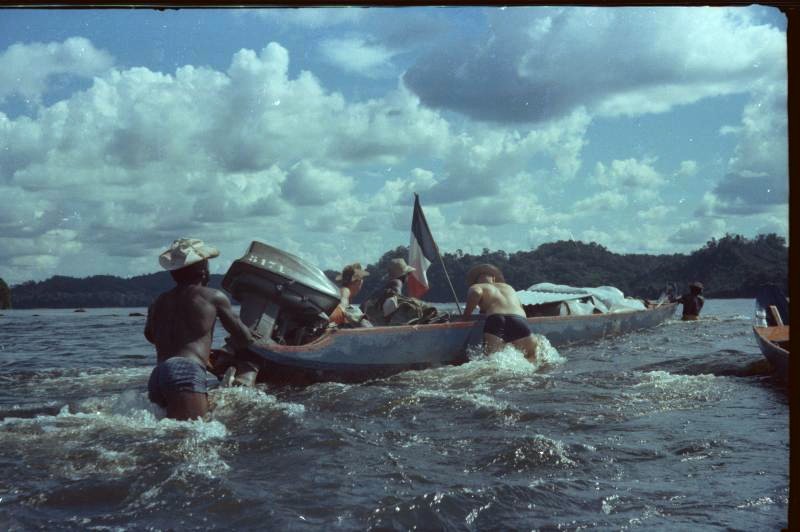 Je me rends à Paris pour prendre un DC10 militaire à destination de Fort-de-France en Martinique. À la sortie de l’avion, je suis dirigé vers un camp de vacances de l’armée à l’Anse à l’Âne. Après une journée de farniente passée à la plage, j’apprends qu’un avion part pour Cayenne et qu’il y a des places. Je me propose et pars avec sept autres volontaires dans un Transal séance tenante pour la Guyane. Voyager en Transal, c’est toute une aventure. La soute est aménagée pour le transport des marchandises ou des parachutistes, mais pas pour des passagers. Lorsqu’au milieu de l’océan, un moteur tombe en panne, cela déclenche l’hilarité des pilotes. Pour nous rassurer, ils nous racontèrent que lors du voyage précédent c’était l’autre moteur qui avait lâché, la routine, quoi !
