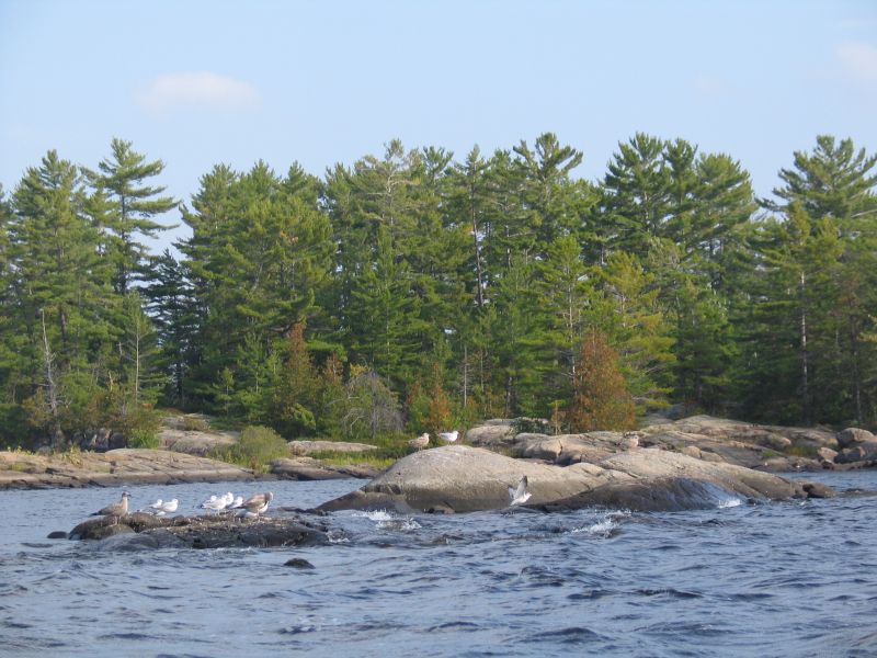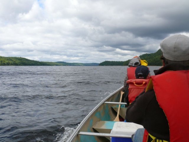 Nous sommes partis en rabaska à moteur de l’ancien poste de traite de Fort-William dans le Pontiac vers le mythique ’’Rocher de l’Oiseau’’ puis vers la ’’pointe aux baptêmes ’’.