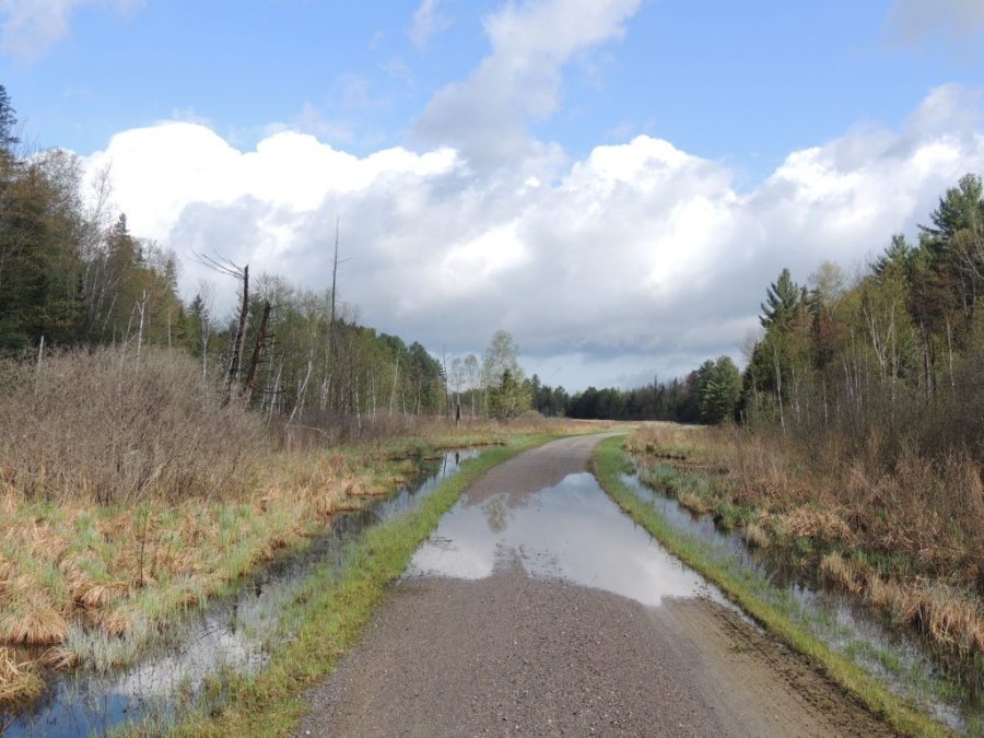 Plus loin, la piste est inondée. Je traverse et sens a 300 m un regard. Je zoom à fond et je vois un coyote, en lisière qui m’observe. Des que je bouge, il fuit.