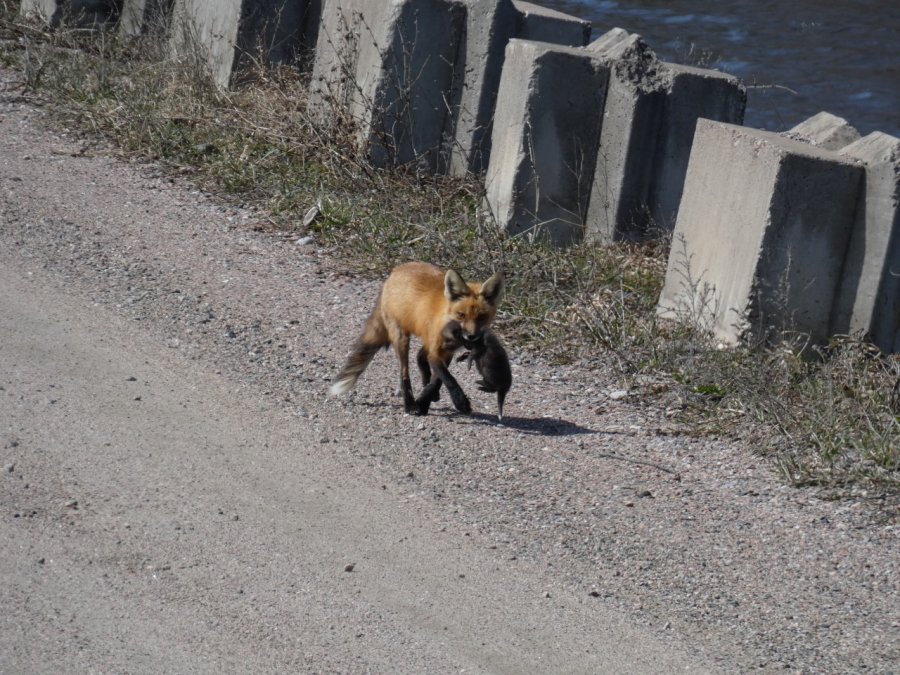 On a vu un renard qui déménageait ses petits, sont terrier étant inondé !