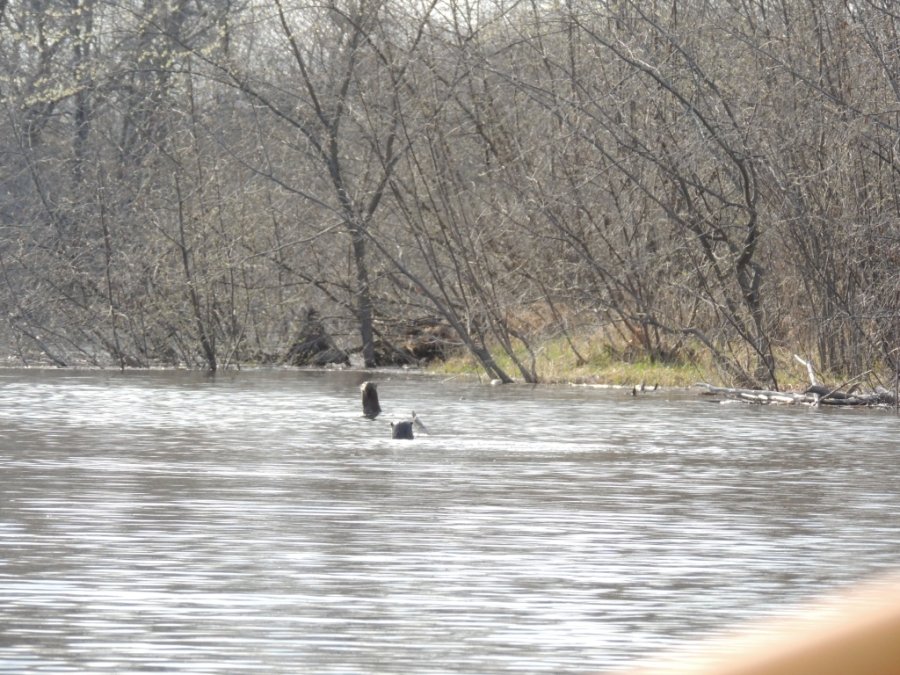 Nous arrivons au quai et nous apercevons deux loutres, peu farouches qui se laissent dériver, tête hors de l’eau, nous observant. On fait quelques photos et nous mettons le Klepper à l’eau.