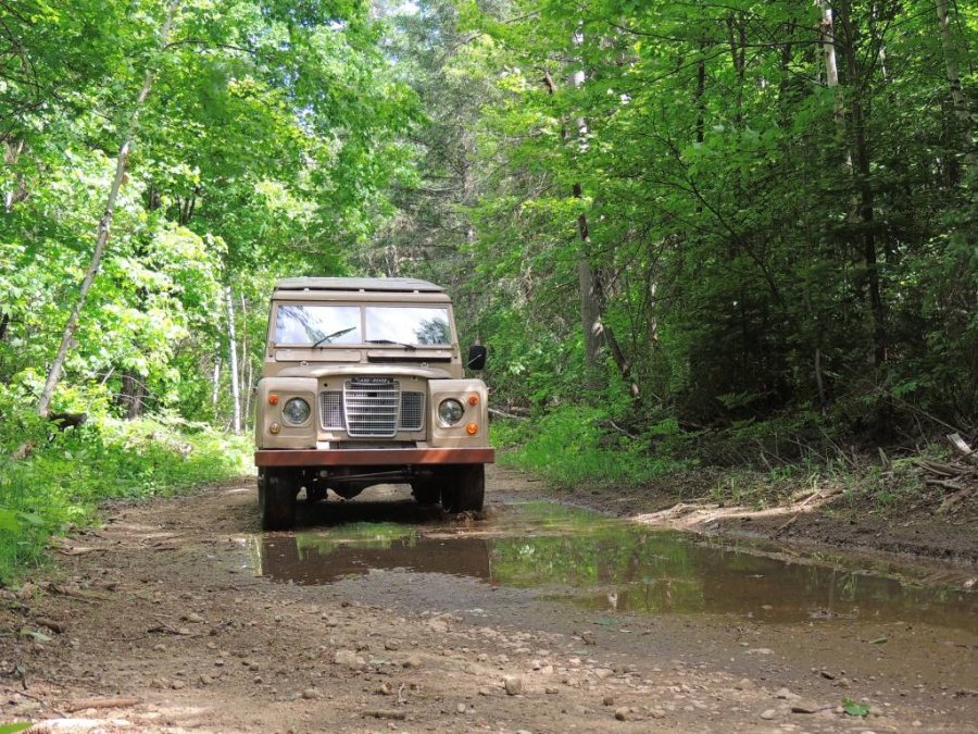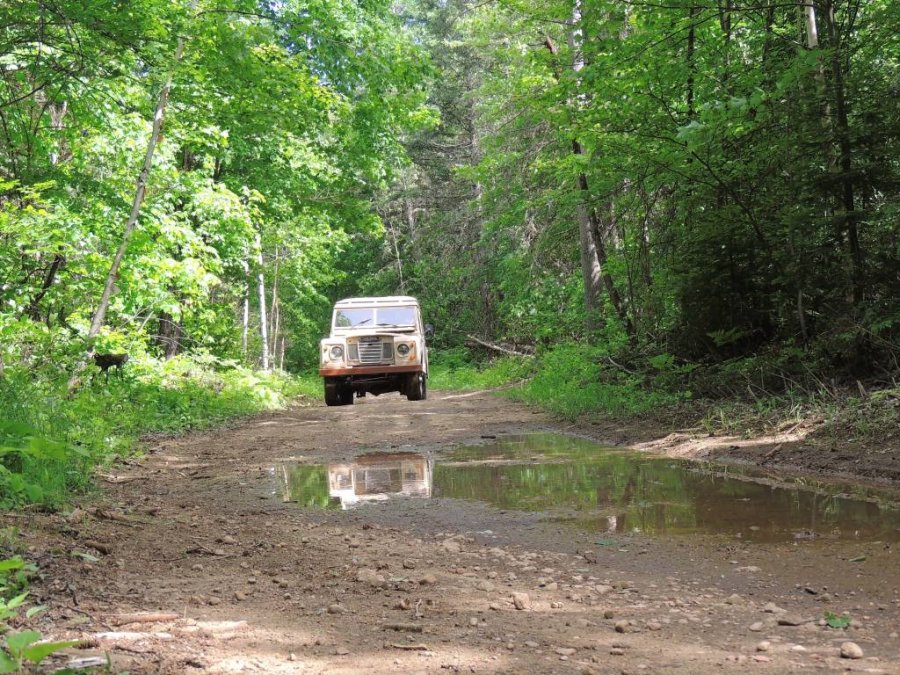 Cet après-midi, nous sommes partis faire un tour sur des chemins forestiers. Momo voulait apprendre à conduire en tout-terrain et le fonctionnement du 4x4, des petites vitesses, des moyeux débrayages et autres joyeusetés et équipement du Série 3.