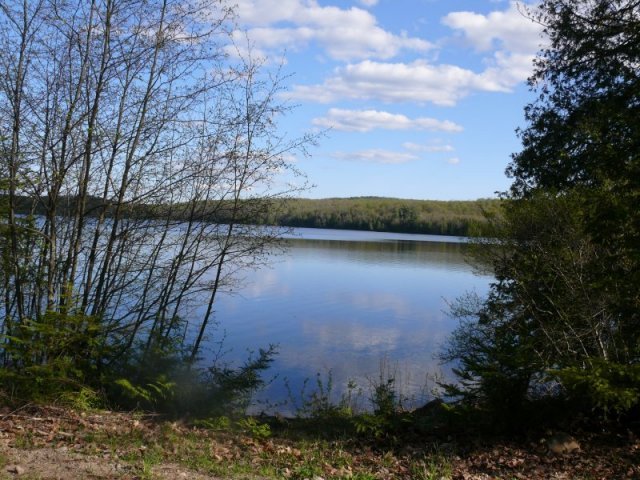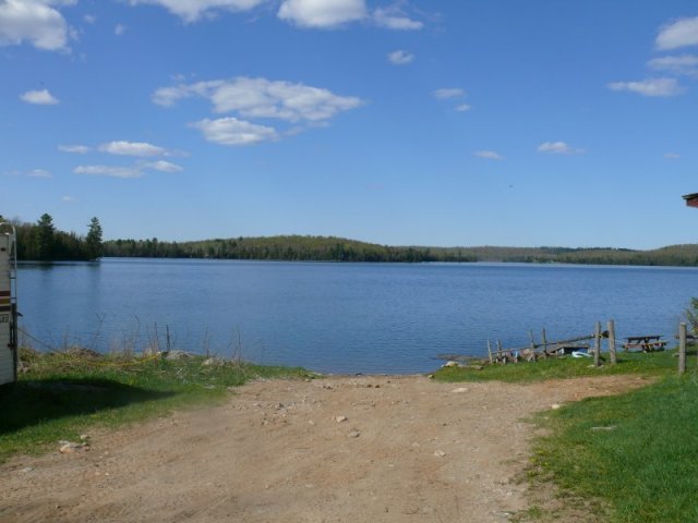 Arrivé au lac Stubb, il y a quelques chalets et une rampe de mise à l’eau.