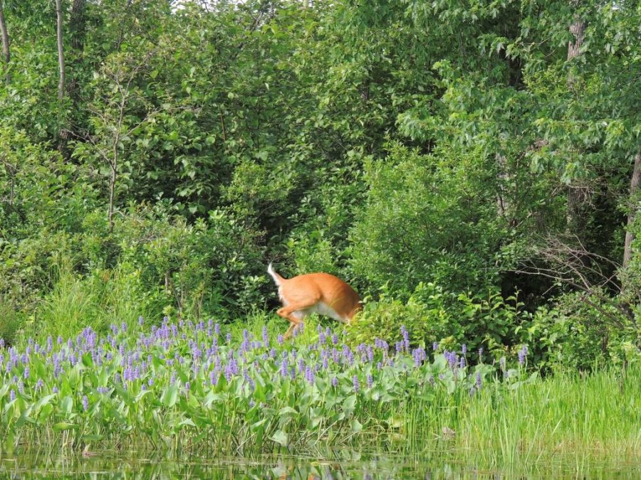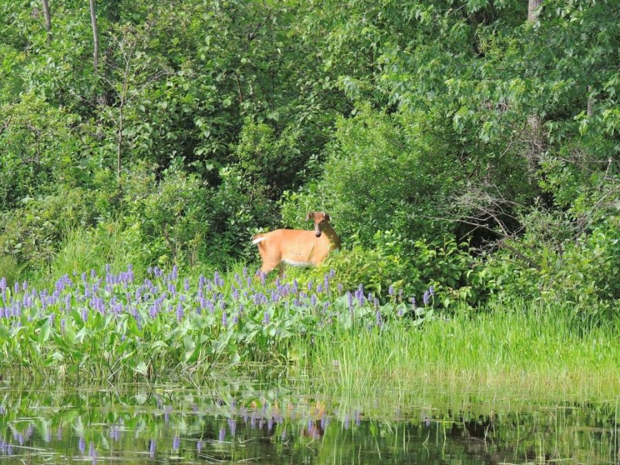 Nous avons vu des hérons, observé un cerf de virginie, des limicoles, un groupe de 4 martins pêcheurs énervés qui criaient en tous sens en un ballet aérien acrobatique. Mais le plus surprenant a été trois rencontres avec 4 castors. Un a tapé la queue dans l’eau avec un splash énorme pour prévenir les copains de notre arrivée. Les autres ont étés plus sociables. Chaque fois, ils étaient loin. Chaque fois, on a arrêté le canoë pour les observer en silence. Chaque fois, ils sont venus vers nous, très prés, passant à moins d’un mètre du bateau. Habituellement, ils nous fuient. Étonnant non ? Étonnant et merveilleux.